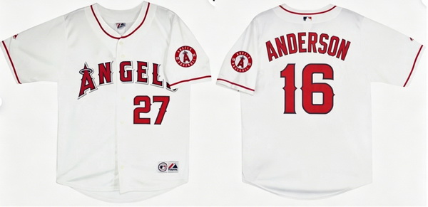 - Mens Los Angeles Angels of Anaheim 18 Brian Goodwin Replica White Home Cool Base Baseball Jersey