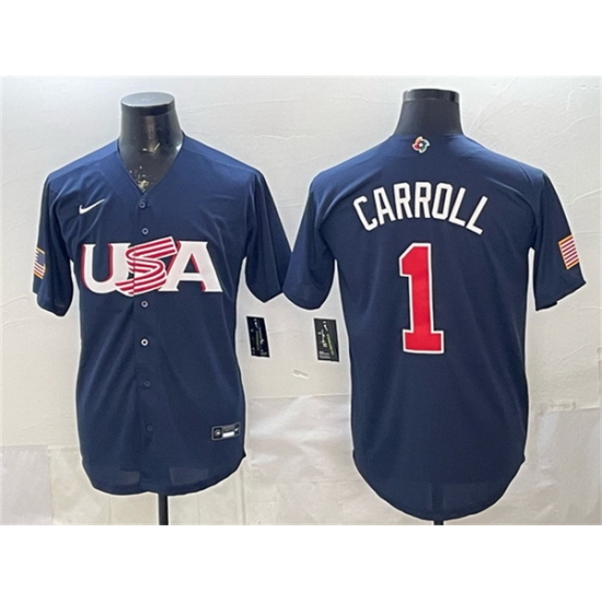 - Men USA Baseball 1 Corbin Carroll Navy World Baseball Classic Stitched Jersey