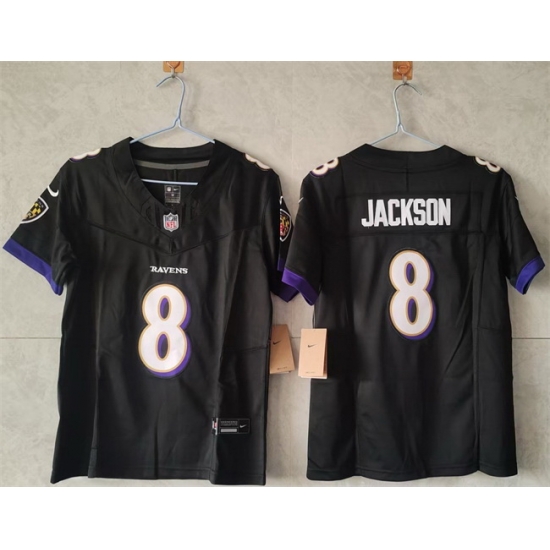 - Women Baltimore Ravens 8 Lamar Jackson Black Vapor Football Jersey