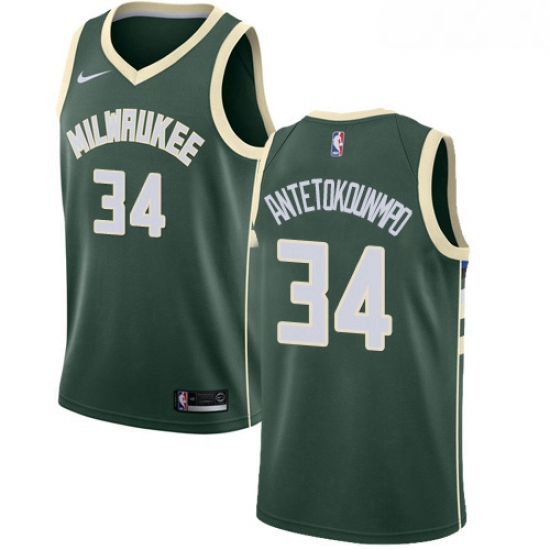 - Youth Nike Milwaukee Bucks 34 Giannis Antetokounmpo Swingman Green Road NBA Jersey Icon Edition